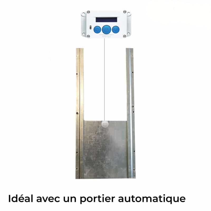 Cet ensemble de rails et trappe est fabriqué par notre atelier métal en Île-et-Vilaine (35), cet ensemble en acier galvanisé s’adapte sur bon nombre de poulaillers. Voici quelques autres usages possibles :